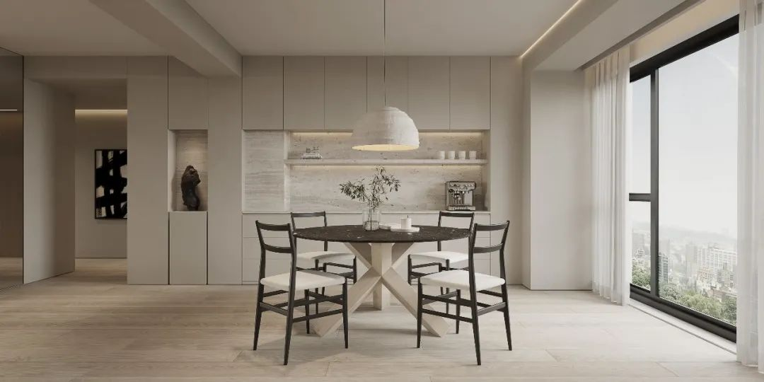 不形于色,簡約内斂,極簡主義的空間,減少陳設的構成(chéng)元素,循極簡的設計美學(xué)和原則,將(jiāng)木元素與現代都(dōu)市的調性充分融合,讓生活與自然對(duì)話。