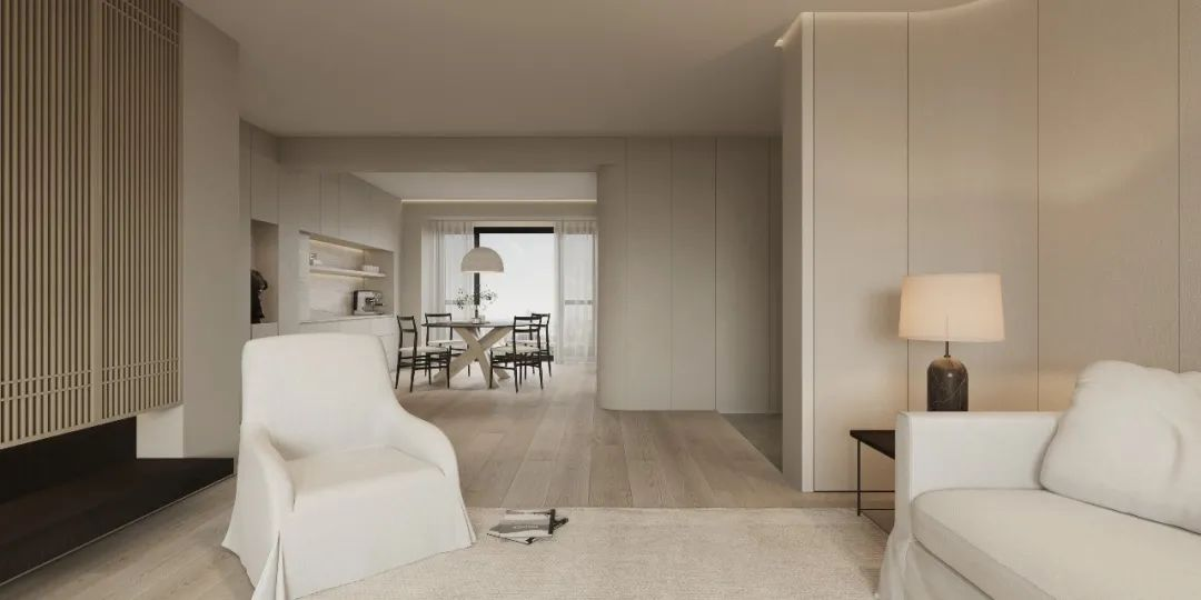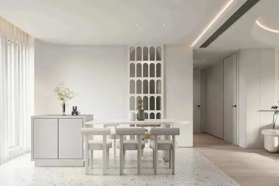 極簡是克制主義美學(xué)與空間的對(duì)話;通過(guò)線條的有序排布,凹凸與平整的有機結合,視覺飽滿的一體化系統,將(jiāng)克制與優雅彌散進(jìn)空間的每個角落。