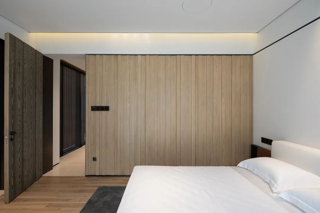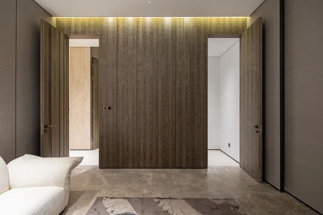 向(xiàng)内而序,顯隐于間,門牆櫃一體化的設計,以現代主義的高度理性對(duì)空間進(jìn)行的一種(zhǒng)推敲表達,交融而不乏活力,簡約又不失精緻。
