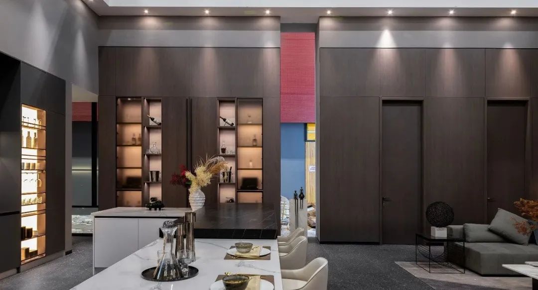 相較于直接的闡述, 門牆櫃整體化的設計更傾向(xiàng)于隐喻的褒貶,它可以通過(guò)格栅、跳色等設計手法來表現空間的韻律之美。