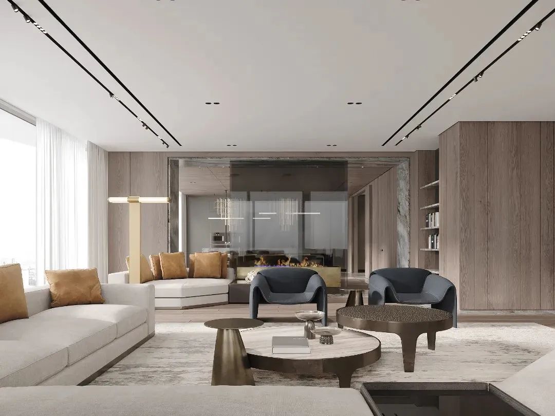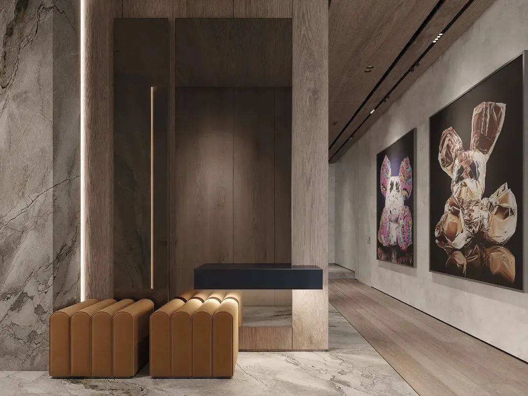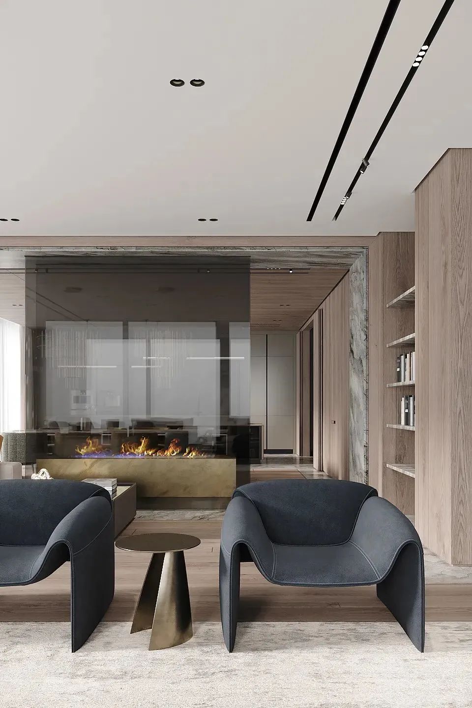 時(shí)光流動,溫暖自然;木飾面(miàn)和大理石的搭配通過(guò)空間塑造及細節互溶的設計手法,形成(chéng)和而不同的空間氣韻。