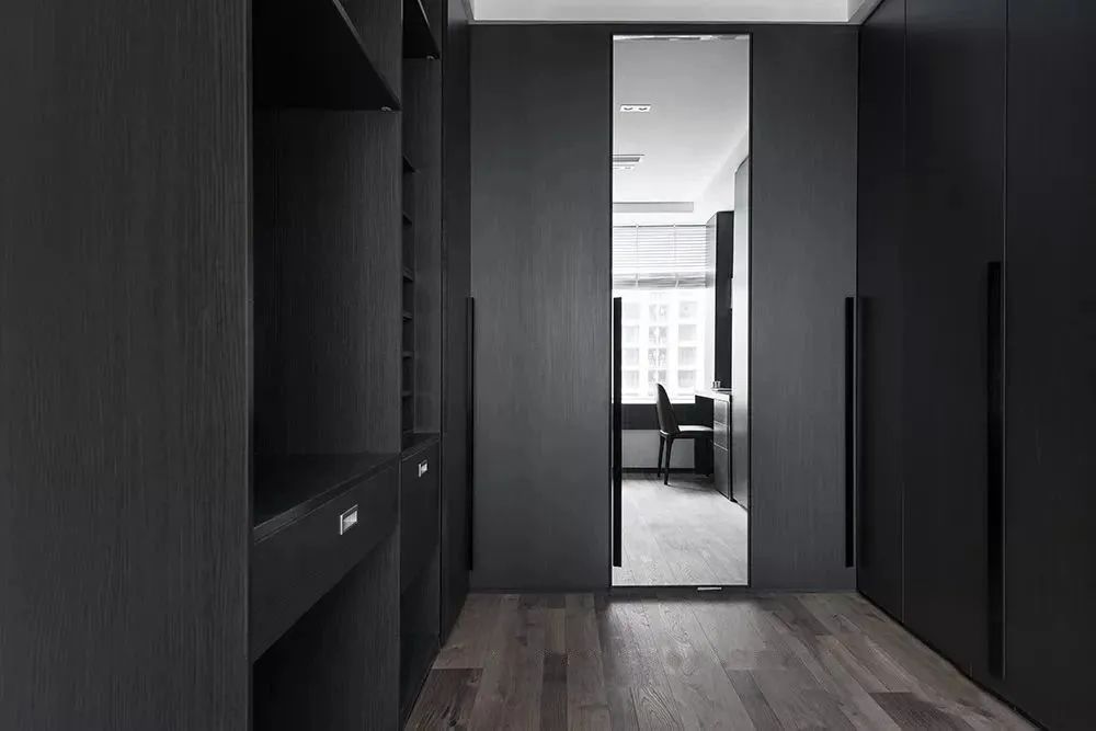 卧室延續著(zhe)客廳風格,沉穩而不張揚,糅合簡約的現代質感,複古中帶著(zhe)高級感,配合氛圍燈光,讓休憩空間更有情調。