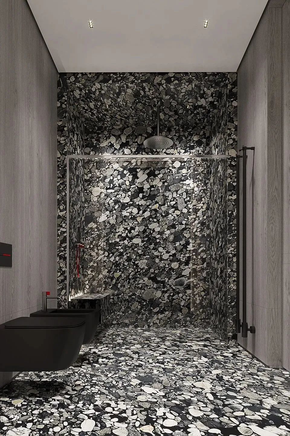 一點一線都(dōu)集中表現簡奢氣質,衛生間的直線造型,平衡著(zhe)身心的放松與靈魂的舒張,借以對(duì)抗凡塵擾擾。