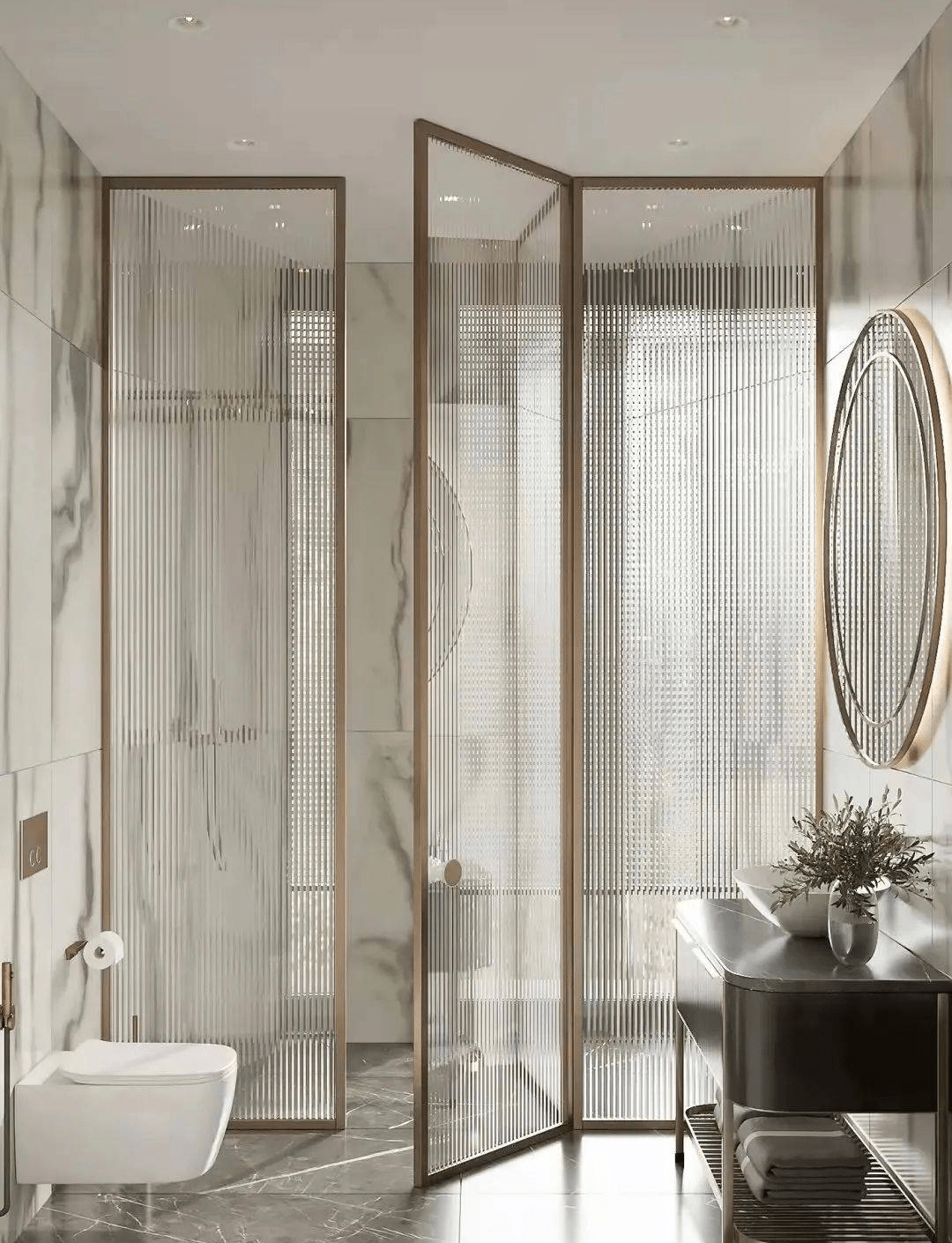 設計不應該止于線條與色彩,更應該停留于場所本身的功用;衛浴間内,大面(miàn)積玻璃的使用,使得整個空間理性不造作。